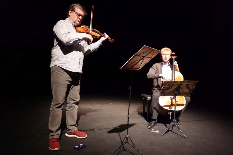 Fotografie ze zkoušky: LEOŠ ČEPICKÝ (housle) a MICHAL KAŇKA (violoncello)